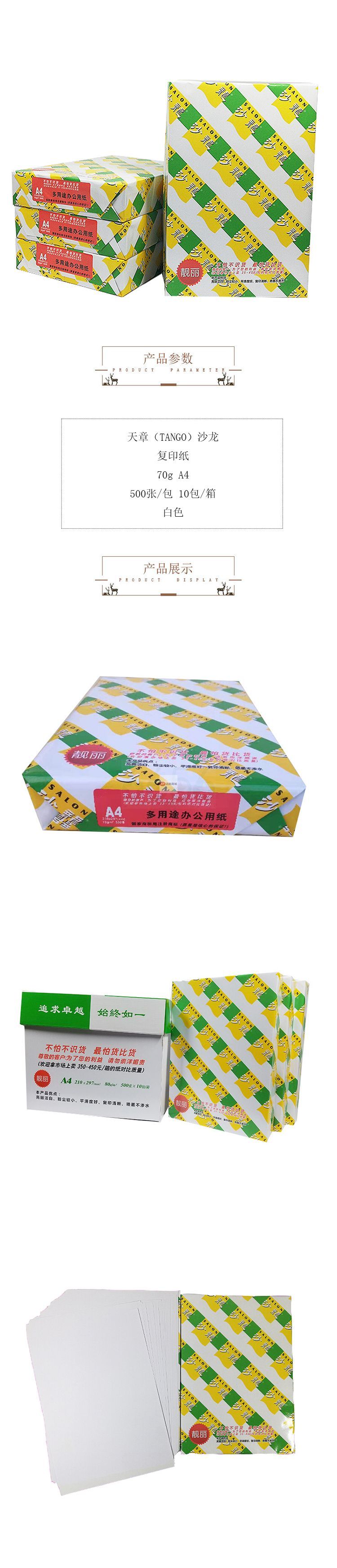 商品名稱(chēng):天章(TANGO)沙龍復(fù)印紙 70g A4 500張/包 10包/箱 白色