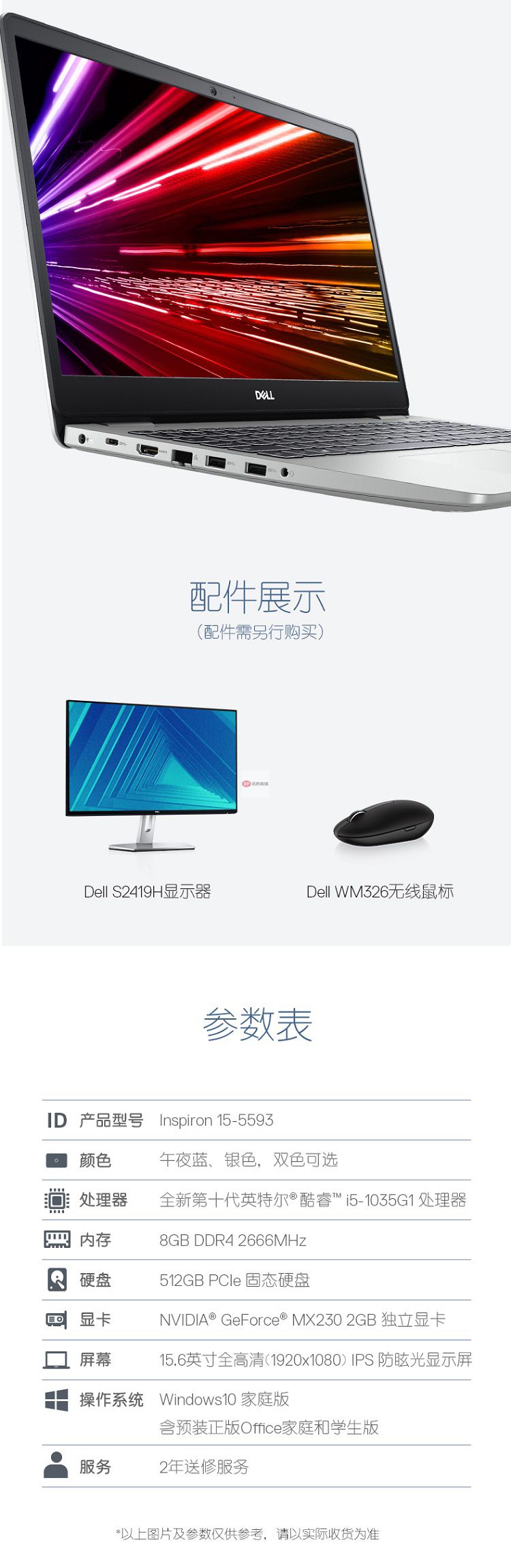 商品名稱(chēng):戴爾DELL靈越5000 酷睿i5 15.6英寸網(wǎng)課學(xué)習(xí)輕薄筆記本電腦(i5-1035G1 8G 512GSSD MX230 2G獨(dú)顯)銀