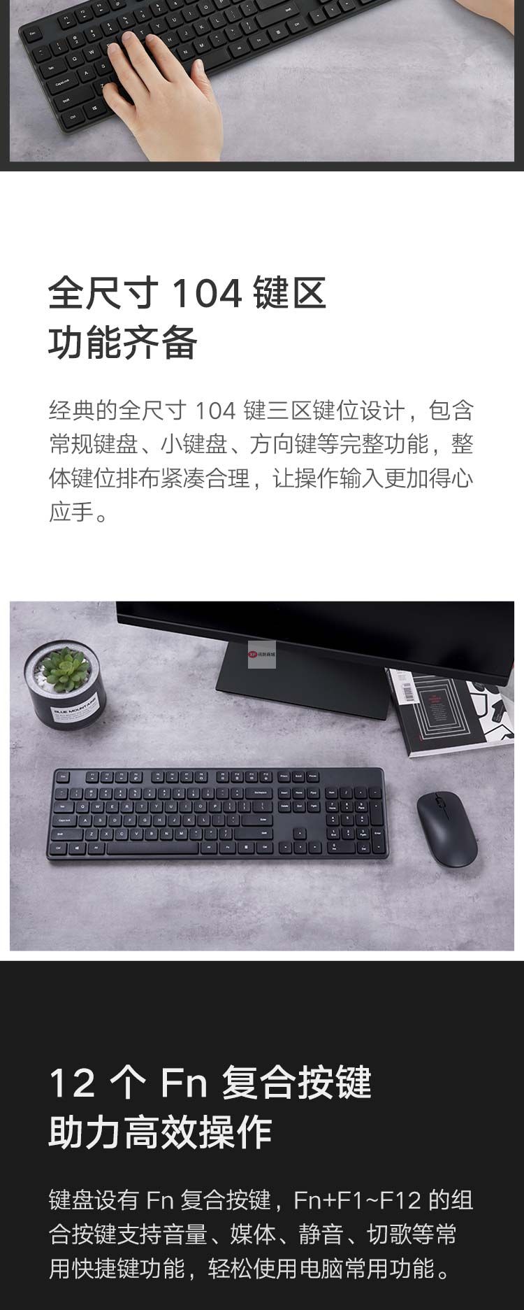 自營(yíng)小米 無線鍵鼠套裝 簡(jiǎn)潔輕薄 全尺寸104鍵鍵盤 舒適鼠標(biāo) 2.4G無線傳輸 電腦辦公套裝