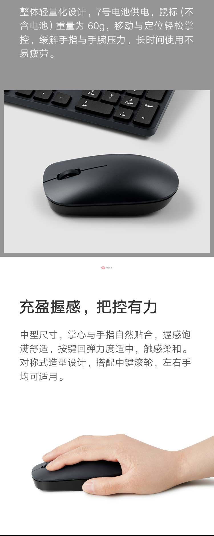 商品名稱:小米 無線鍵鼠套裝 簡(jiǎn)潔輕薄 全尺寸104鍵鍵盤 舒適鼠標(biāo) 2.4G無線傳輸 電腦辦公套裝