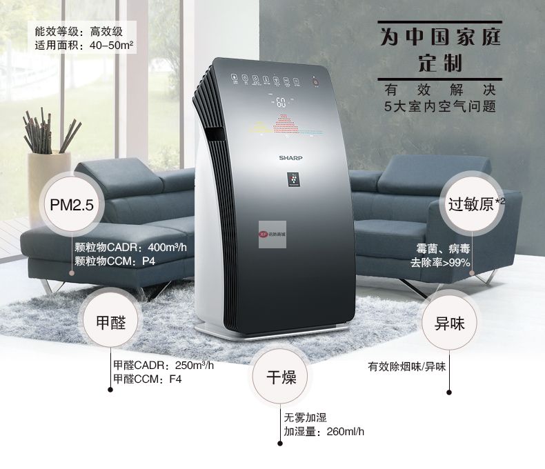 商品名稱(chēng):夏普KC-CG60-M 空氣凈化器 除甲醛PM2.5霧霾異味花粉加濕智能互聯(lián)辦公室除煙塵