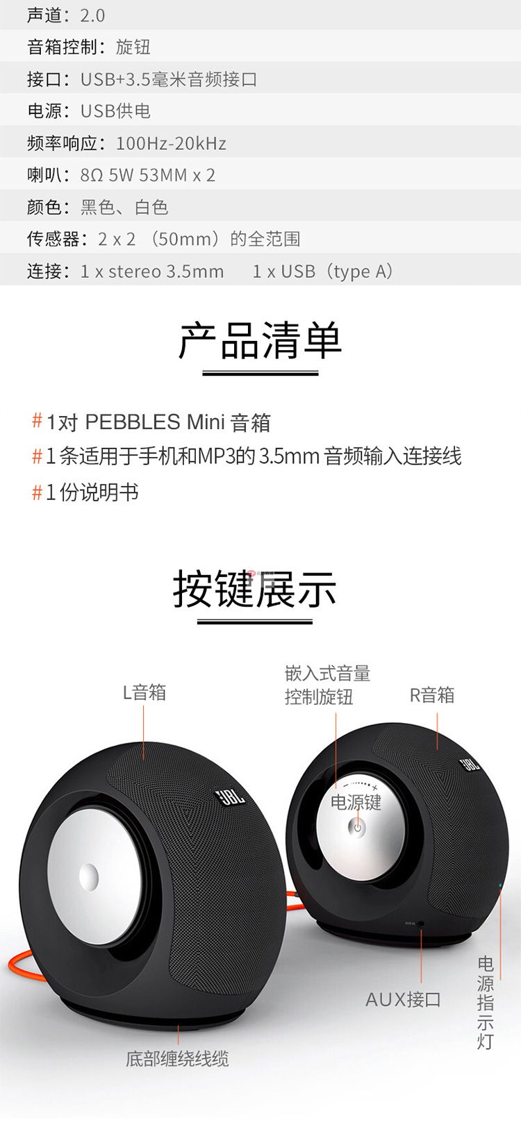 自營(yíng)JBL 電腦小音響 Pebbles mini USB連接 2.0聲道