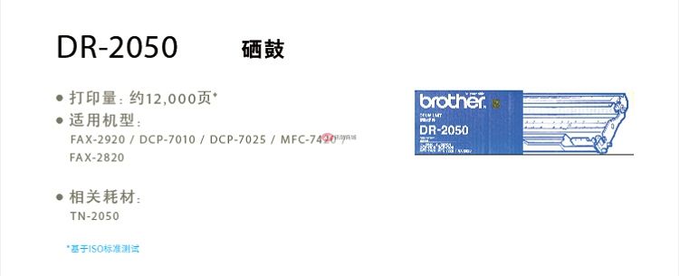 商品名稱:兄弟(brother) DR-2050 黑白打印機硒鼓(黑色)適用DCP7010 2820 7420