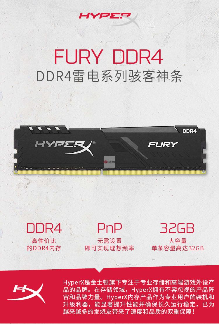 商品名稱:金士頓 (Kingston) 16GB(8G×2)套裝 DDR4 2666 臺(tái)式機(jī)內(nèi)存條 駭客神條 Fury雷電系列
