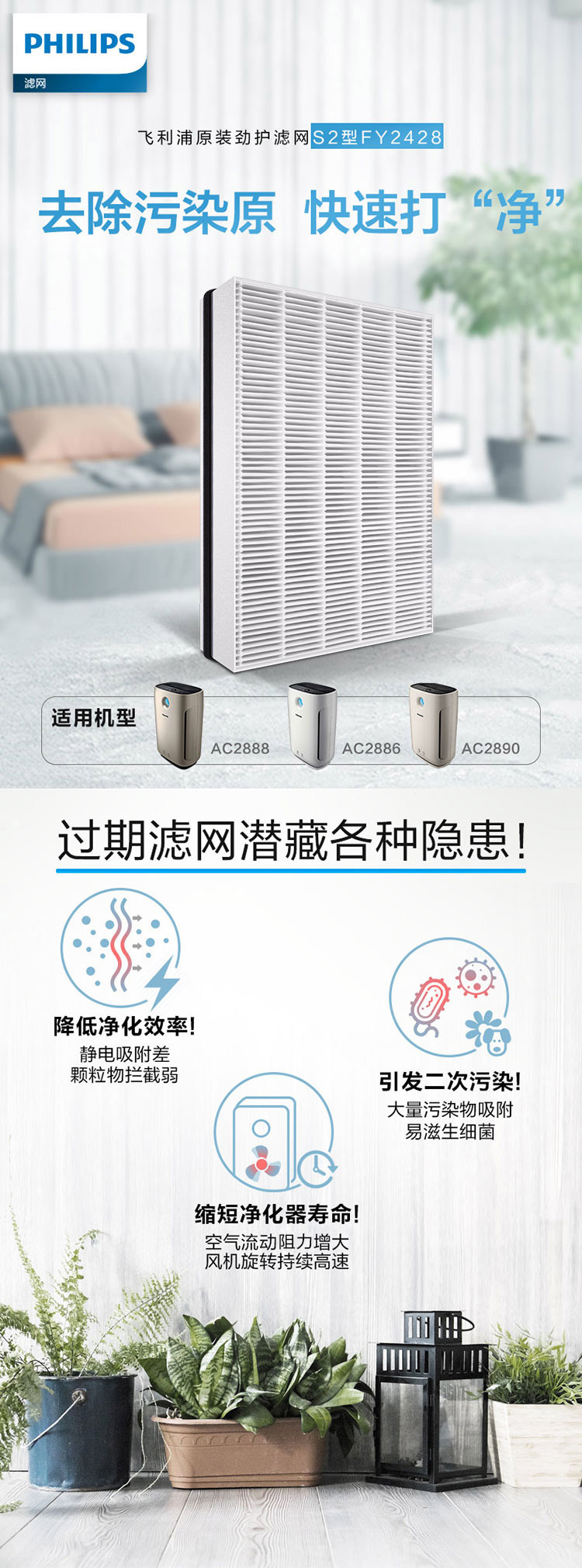 自營飛利浦(PHILIPS)FY2428 納米級勁護濾網(wǎng)濾芯 適用于空氣凈化器AC2886、AC2888