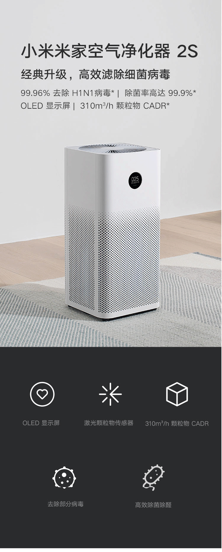 商品名稱:米家 小米空氣凈化器2S 家用除甲醛除煙味PM2.5 靜音設(shè)計 智能互聯(lián) AC-M4-AA 29W