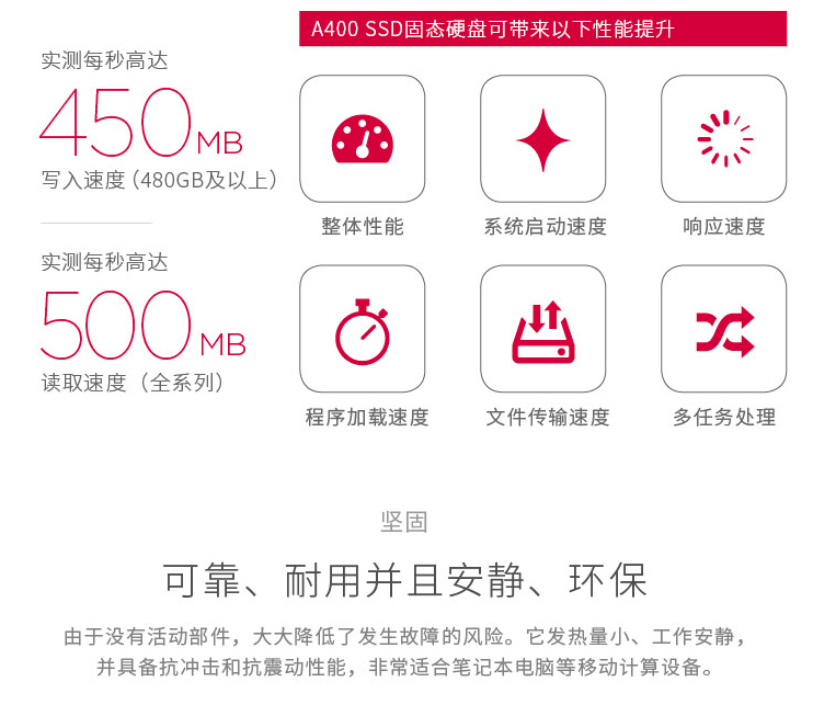 商品名稱:金士頓(Kingston) 480GB SSD固態(tài)硬盤 SATA3.0接口 A400系列 『A400』SATA 經(jīng)典 『480-512』GB