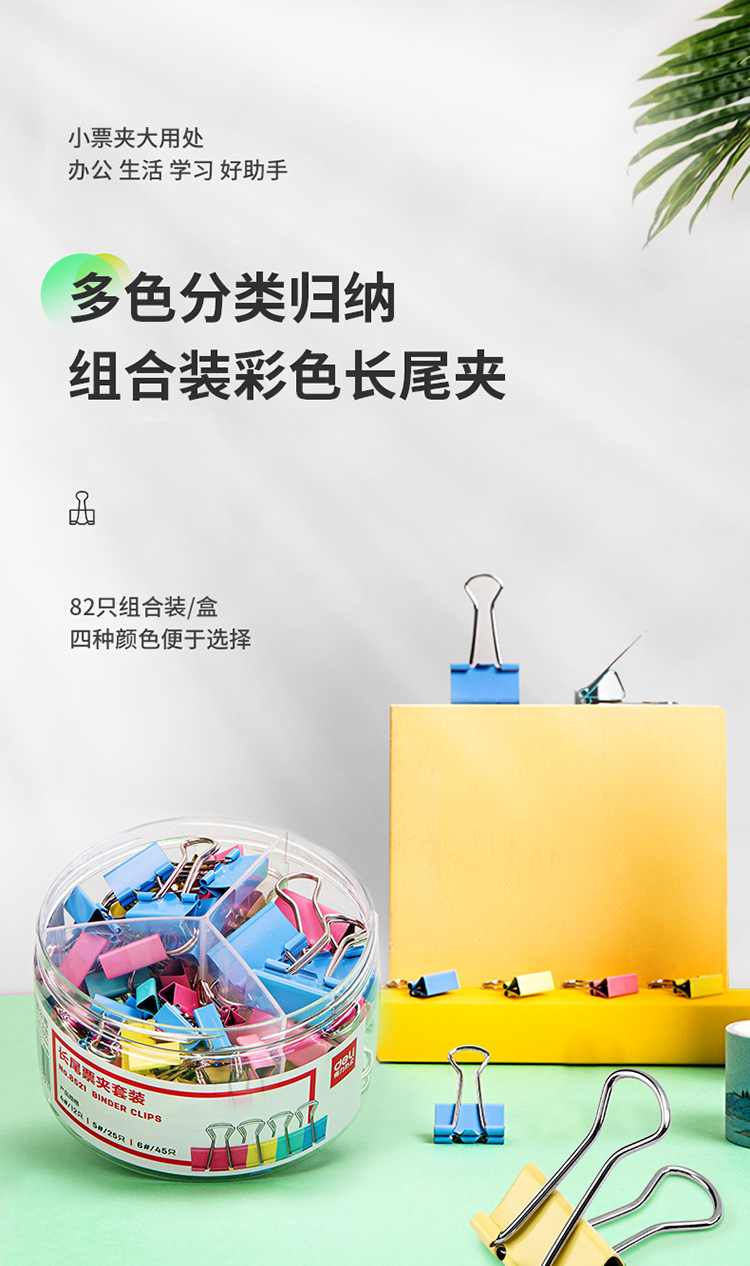 自營(yíng)得力(deli)82只組合裝彩色長(zhǎng)尾夾/燕尾夾/票夾(25mm*12只+19mm*25只+15mm*45只) 辦公用品 8521