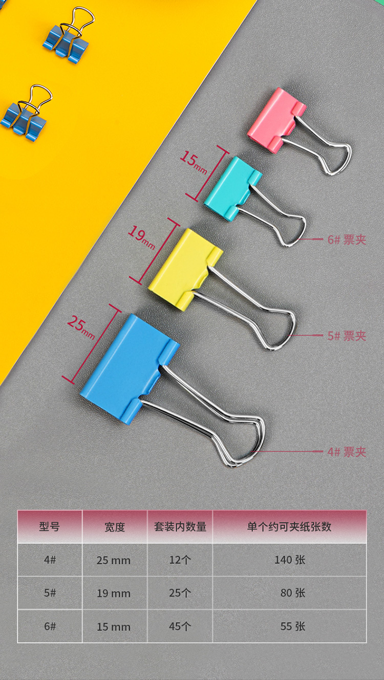 商品名稱:得力(deli)82只組合裝彩色長(zhǎng)尾夾/燕尾夾/票夾(25mm*12只+19mm*25只+15mm*45只) 辦公用品 8521