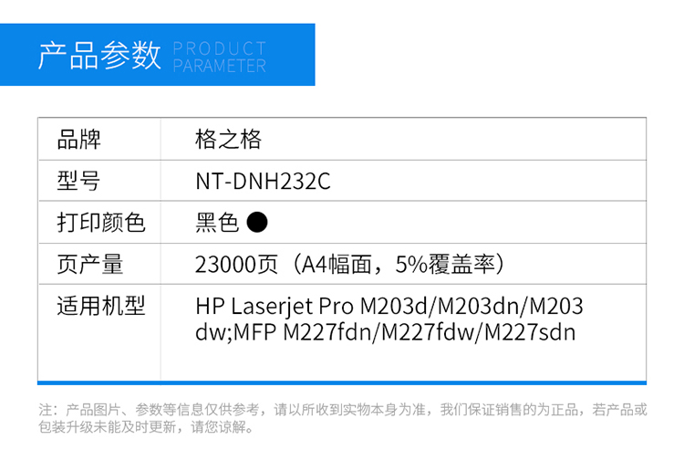 商品名稱:格之格 CF232A硒鼓NT-DNH232C帶芯片適用惠普M203d M203dn M227fdn M227fdw打印機hp32A硒鼓組件 不含粉盒