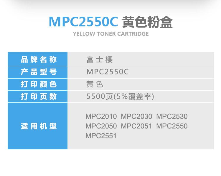 商品名稱:富士櫻(FUSICA)MPC2550C黃色粉盒 適用理光MP C2010/C2030/C2050/C2051/C2530/C2550/C2551