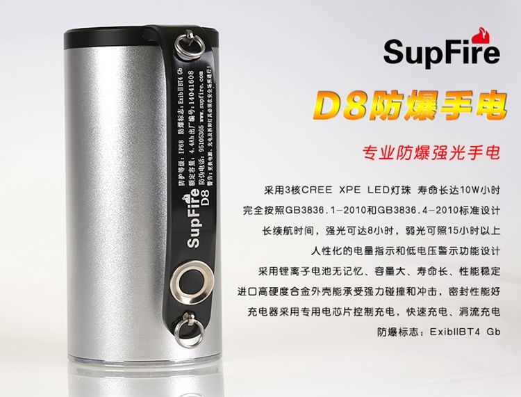 商品名稱:神火(SupFire) D8 防爆手提式強(qiáng)光手電筒