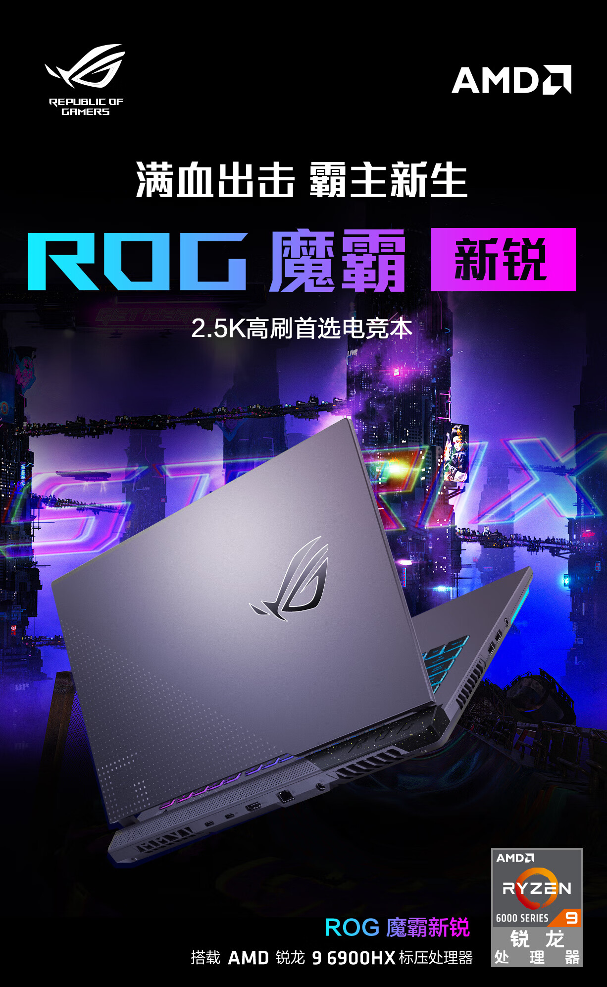 自營ROG魔霸新銳2022 15.6英寸2.5K 165Hz游戲本筆記本電腦(R9-6900HX 液金導熱 16G 512G RTX3060 140W)