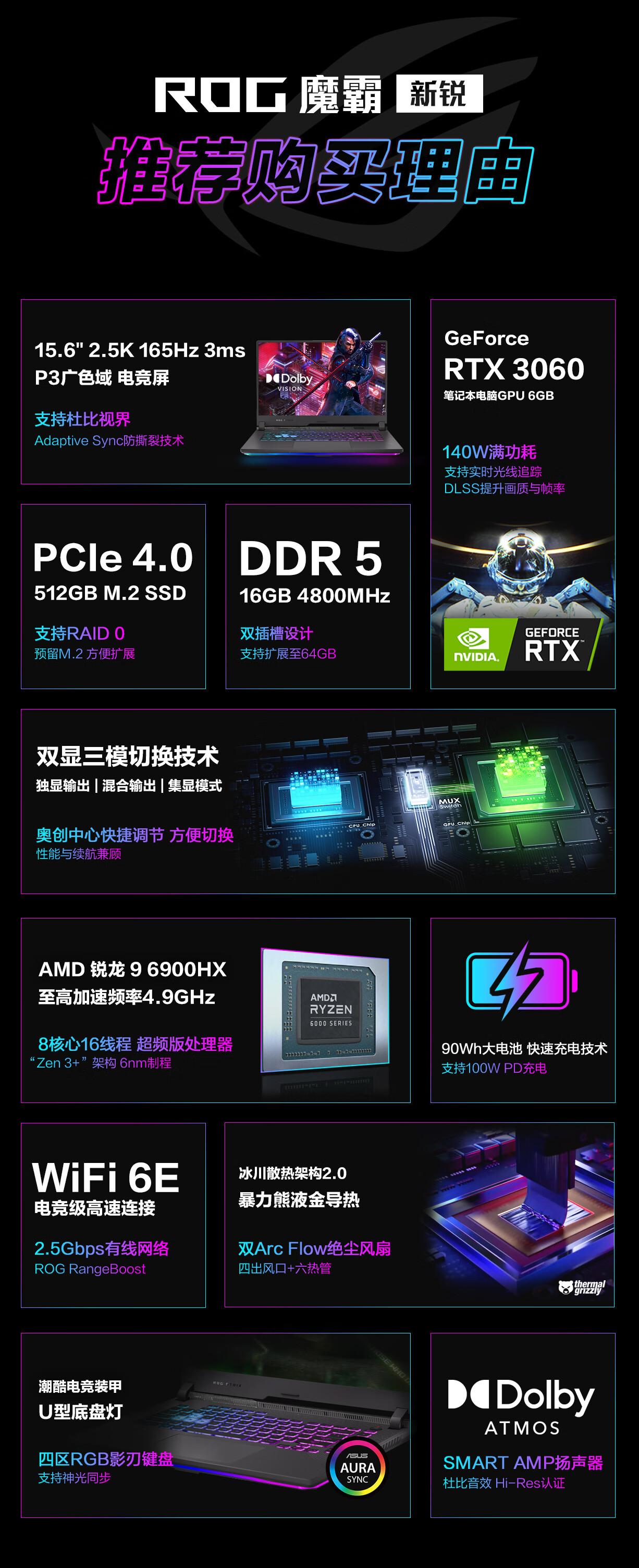 商品名稱:ROG魔霸新銳2022 15.6英寸2.5K 165Hz游戲本筆記本電腦(R9-6900HX 液金導熱 16G 512G RTX3060 140W)
