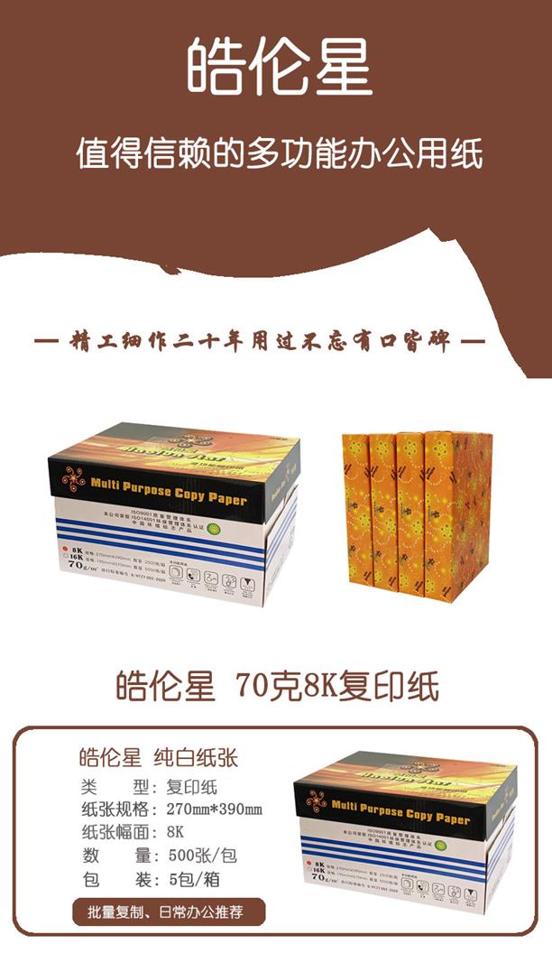 自營(yíng)皓倫星 70克8K 復(fù)印紙 5包/箱 500張/包(單價(jià) 元/箱)廠家直銷