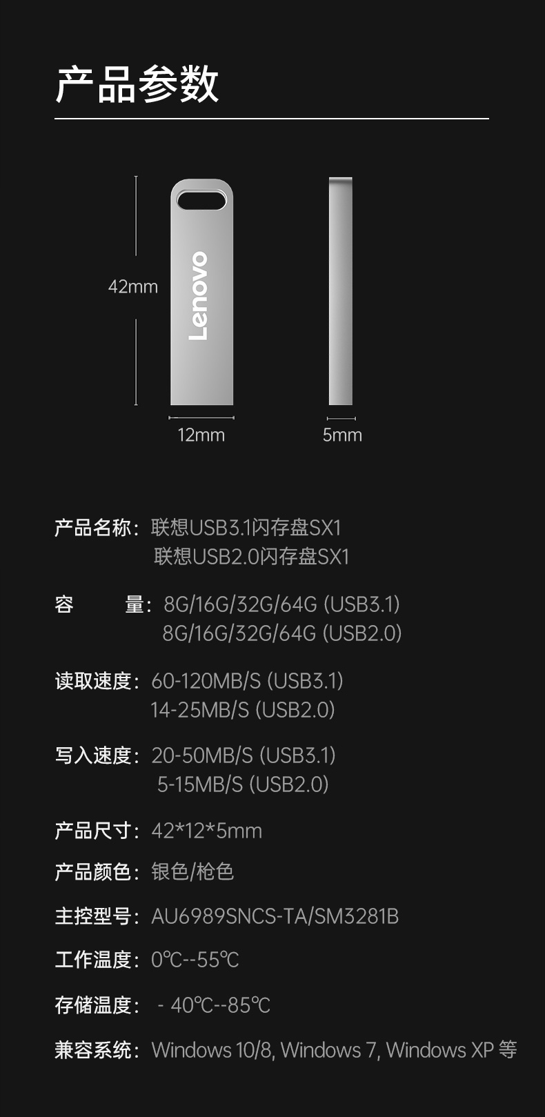 商品名稱:聯(lián)想(Lenovo)64GB USB3.1 U盤 SX1速芯系列銀色 金屬耐用 商務(wù)辦公必備