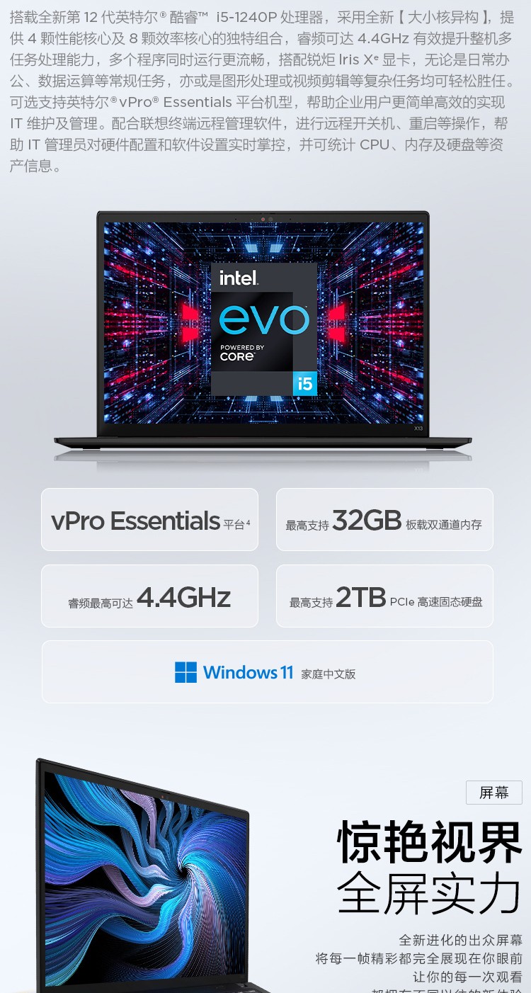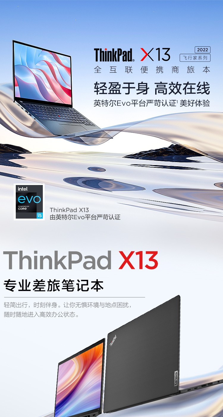 自營ThinkPad 聯(lián)想 X13 2022高端輕薄本 13.3英寸游戲商務辦公超薄筆記本電腦 指紋識別 12代i5 16G 512G 02CD