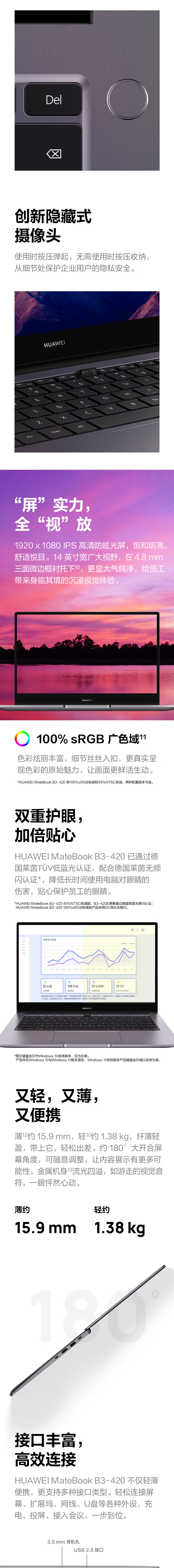 自營(yíng)華為筆記本電腦 MateBook B3-420 14英寸輕薄本 (i7-1165G7 16G 512G) 深空灰