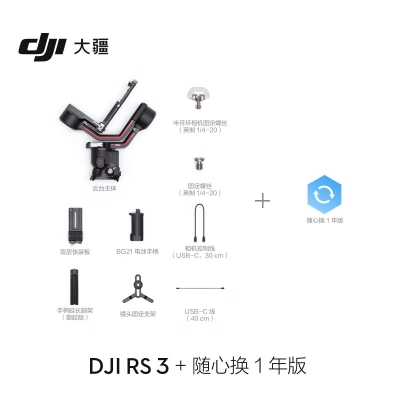 自營大疆 DJI RS 3 如影s RoninS 手持穩(wěn)定器 輕量專業(yè)防抖拍攝手持云臺 單反相機云臺+隨心換 1年版實體卡