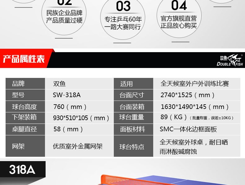 商品名稱:雙魚室外318A標(biāo)準(zhǔn)乒乓球臺(tái)防水戶外露天乒乓球