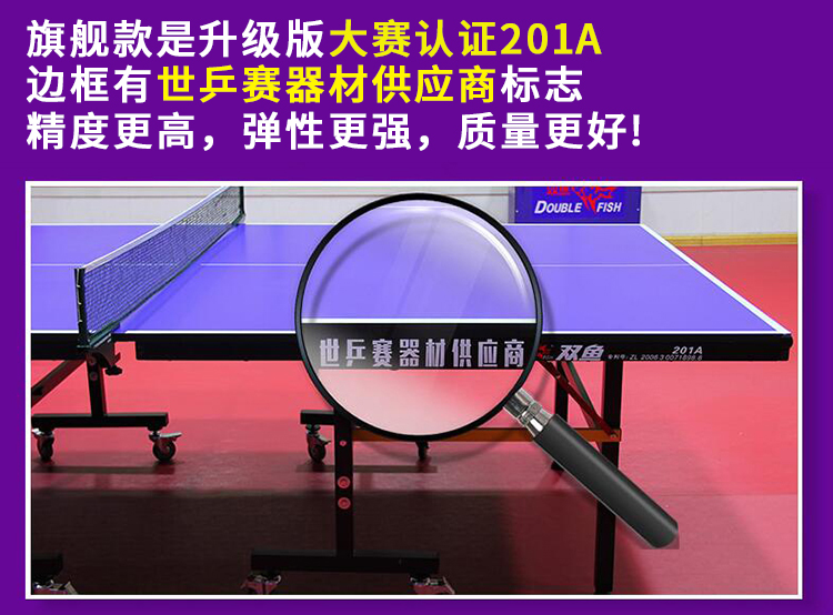 商品名稱:雙魚室內(nèi)可折疊移動標(biāo)準(zhǔn)乒乓球桌 201A球臺藍色