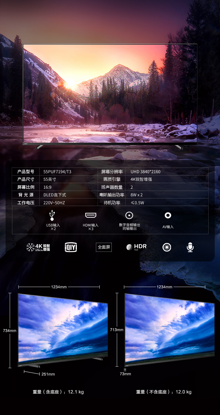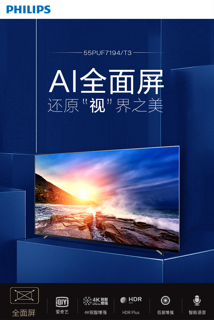 商品名稱:飛利浦(PHILIPS)55PUF7194/T3 55英寸 人工智能 一級能效 超薄全面屏 4K超高清HDR網(wǎng)絡(luò)智能液晶平板電視機