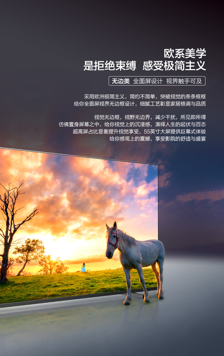 • 電視類型:全面屏,人工智能,超薄,4K超清