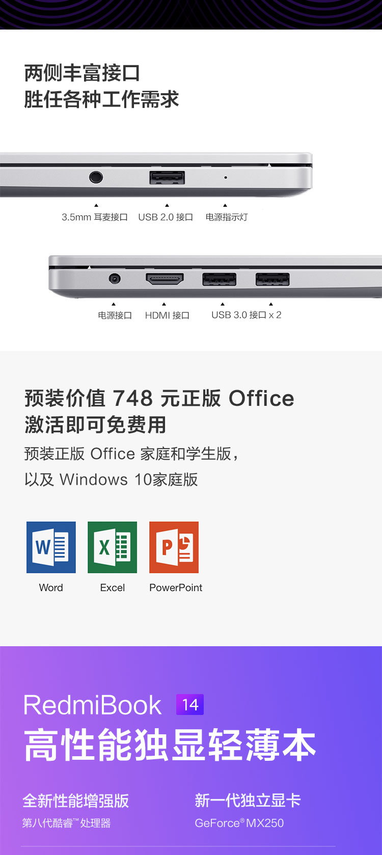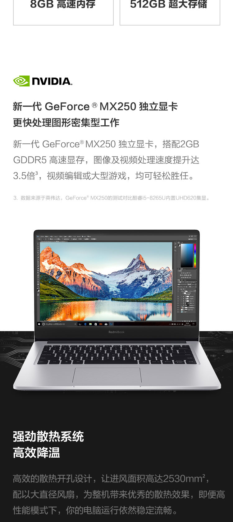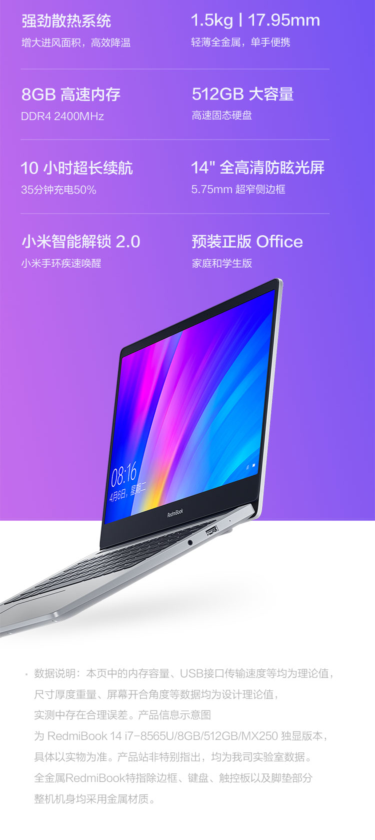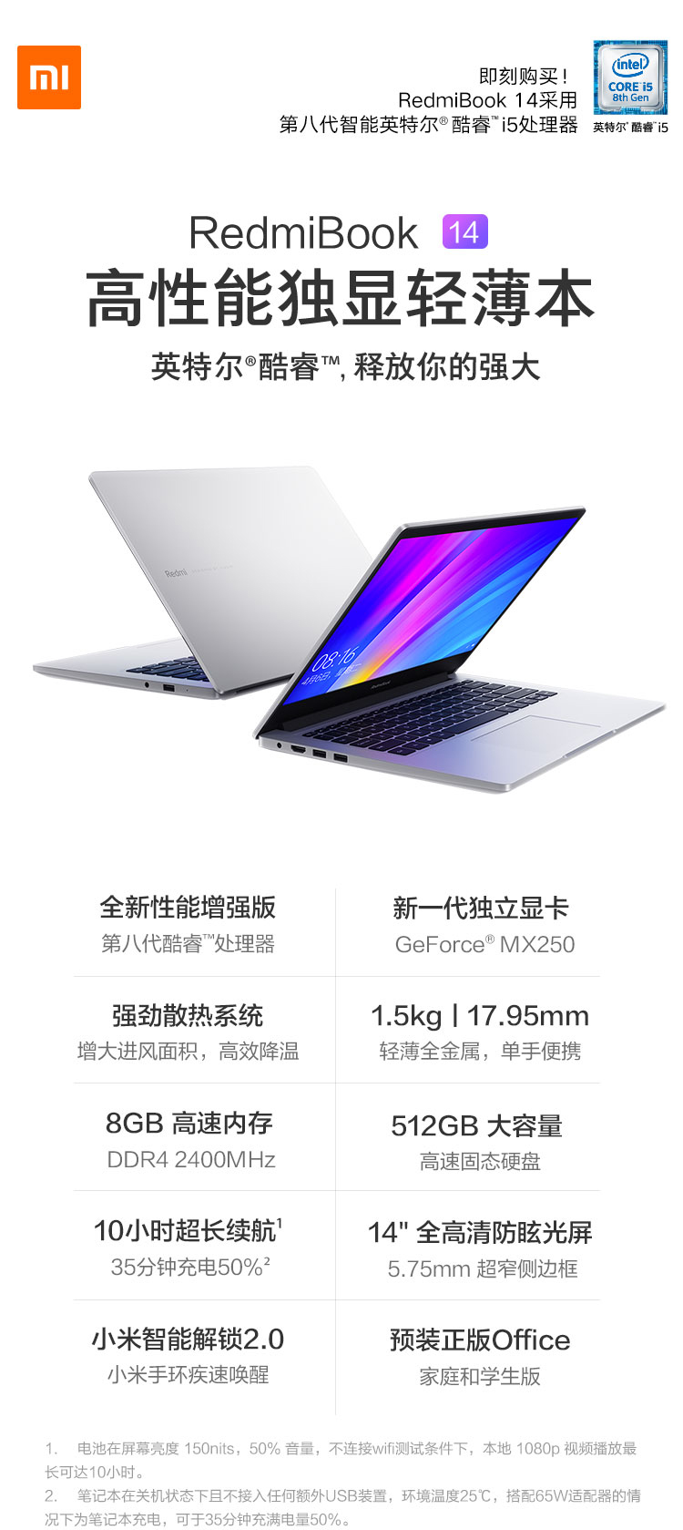 自營RedmiBook 14英寸全金屬超輕薄(第八代英特爾酷睿i5-8265U 8G 512G SSD MX250 2G獨顯 Office 支持手環(huán)疾速解鎖 Win10)游戲 銀 筆記本 小米 紅米