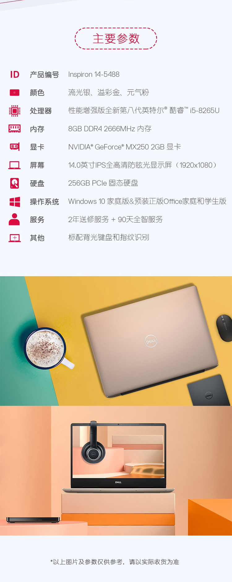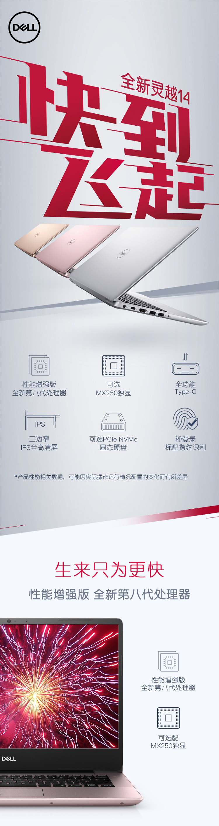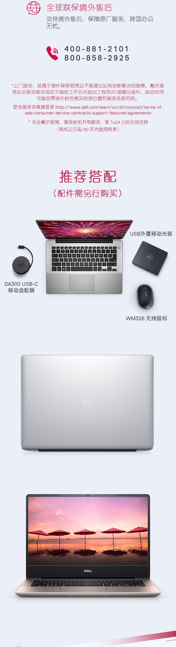 商品名稱:戴爾靈越14燃 14英寸英特爾酷睿i5輕薄窄邊框筆記本電腦(i5-8265U 8G 256G MX250 2G獨(dú)顯 背光鍵盤)冰河銀