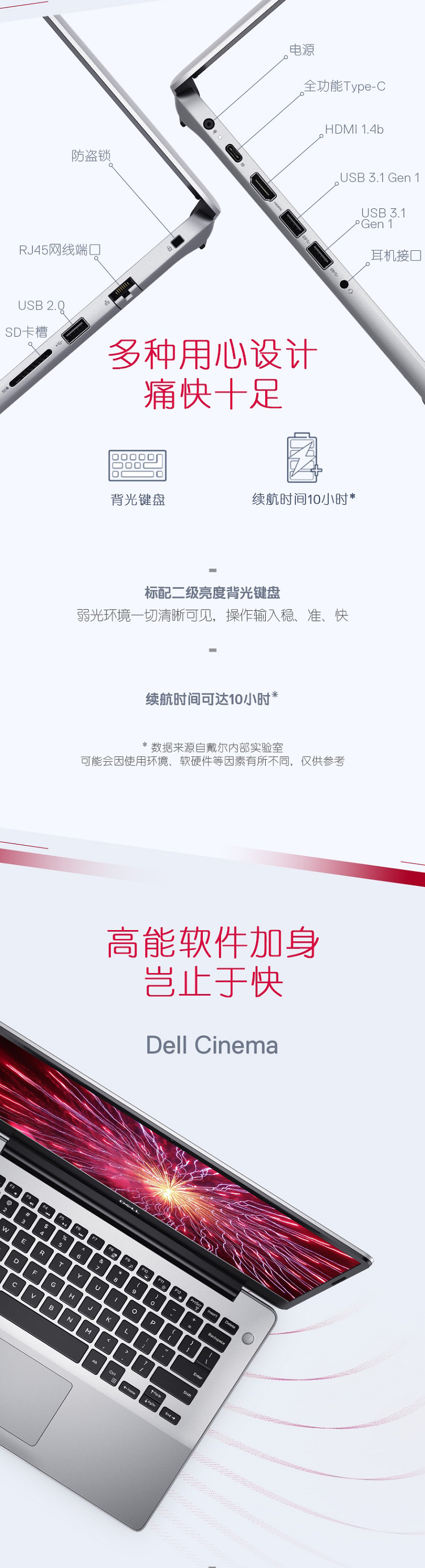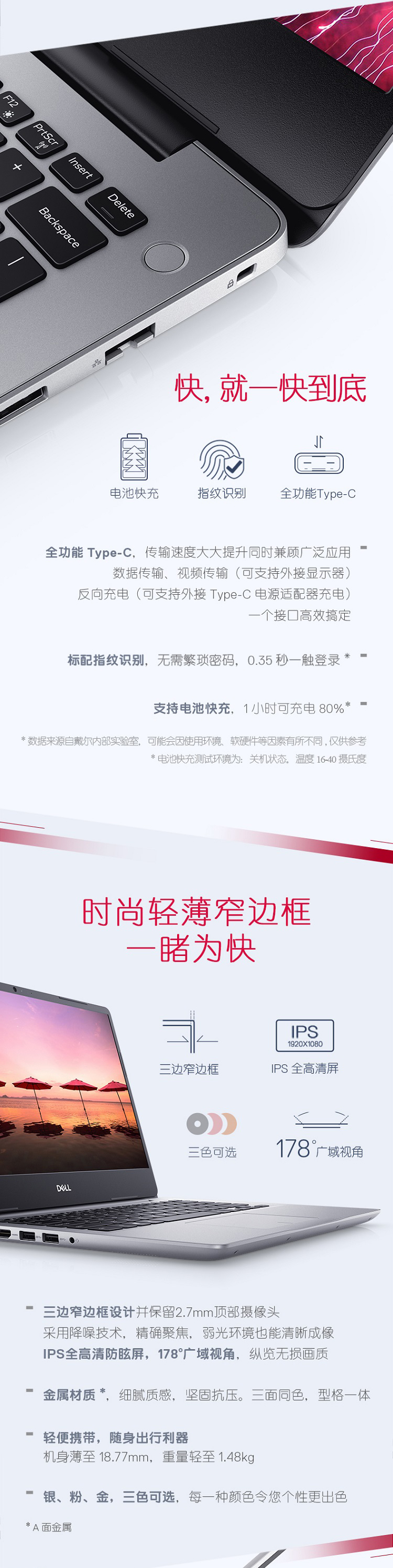自營(yíng)戴爾靈越14燃 14英寸英特爾酷睿i5輕薄窄邊框筆記本電腦(i5-8265U 8G 256G MX250 2G獨(dú)顯 背光鍵盤)冰河銀