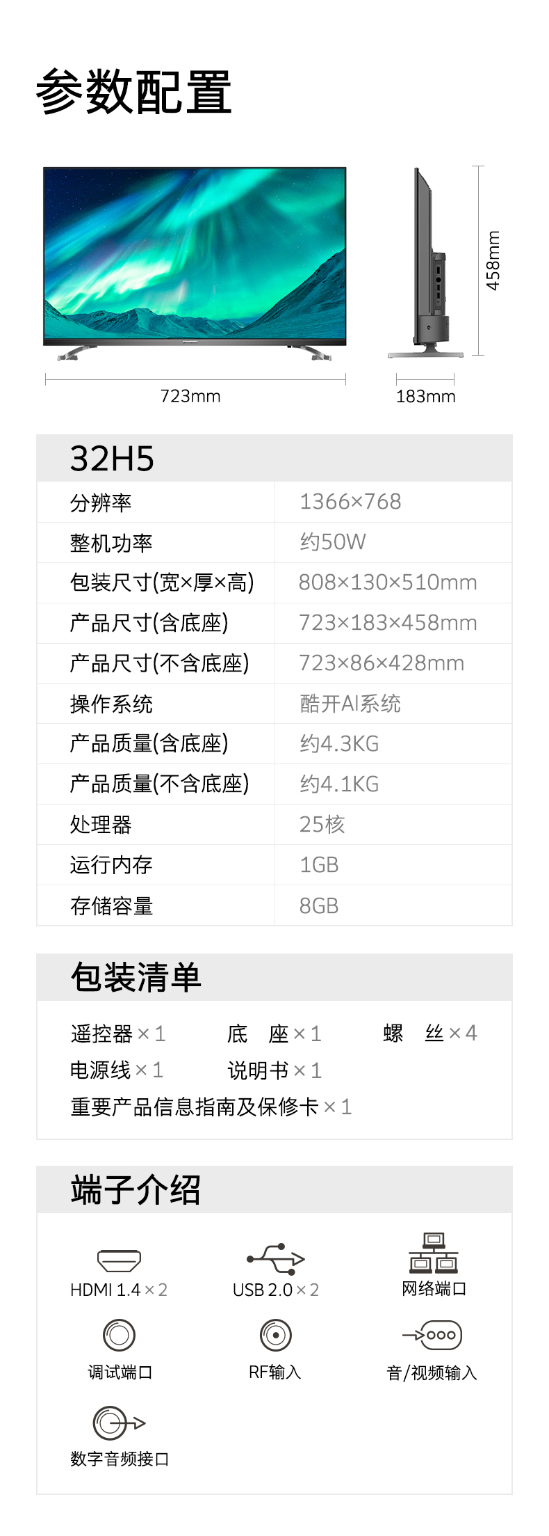 商品名稱:創(chuàng)維(SKYWORTH)32H5 32英寸高清HDR 護眼全面屏 AI人工智能語音 網(wǎng)絡(luò)WIFI 臥室液晶平板電視機