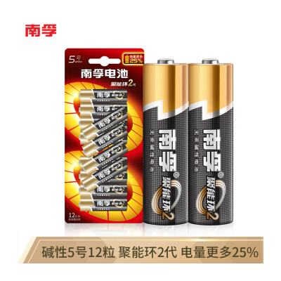 自營南孚(NANFU)5號堿性電池12粒 聚能環(huán)2代 適用于兒童玩具/血壓計/血糖儀/掛鐘/鍵盤/遙控器等 LR6AA
