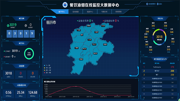 產(chǎn)品概述:餐飲油煙在線監(jiān)控平臺可實時監(jiān)測油煙排放濃度、顆粒物排放濃度及凈化器和風機的工作狀態(tài),集成“數(shù)據(jù)采集與管理系統(tǒng)”、“數(shù)據(jù)統(tǒng)計與查詢系統(tǒng)”、“餐飲企業(yè)管理系統(tǒng)”、“報警管理系統(tǒng)”、“GIS網(wǎng)絡地理信息系統(tǒng)”等相關(guān)功能,實現(xiàn)了不同空間、不同維度圖文一體化的應用分析。