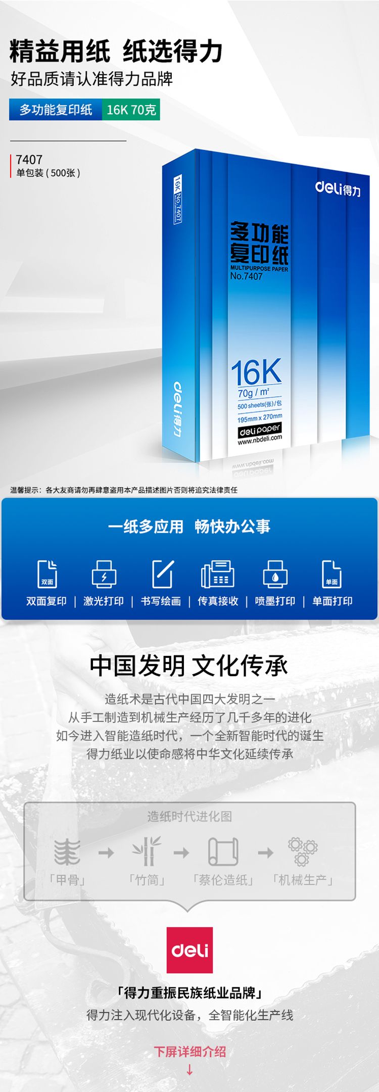 自營得力(deli) 復(fù)印紙 7408 幅面:16K 克重:70g 包裝規(guī)格:500張/包 白色
