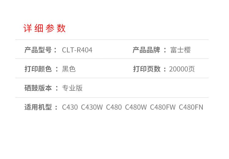 商品名稱:富士櫻(FUSICA)CLT-R404硒鼓組件 適用三星C430 C430W C480 C480W C480FN C480FW
