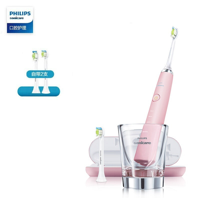 商品名稱:飛利浦 HX9362 電動(dòng)牙刷 成人 鉆石系列粉鉆 含刷頭*2+充電旅行盒+充電玻璃杯 粉色